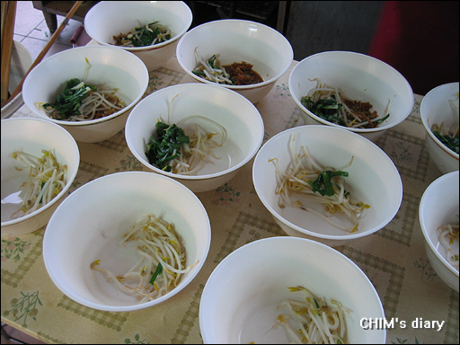 吃到後來才發現底下有著燙韭菜跟豆芽,