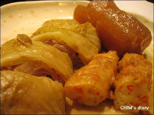 店員推薦的蘿蔔、高麗菜捲、黑輪,跟想像中的美味有點不太相同。