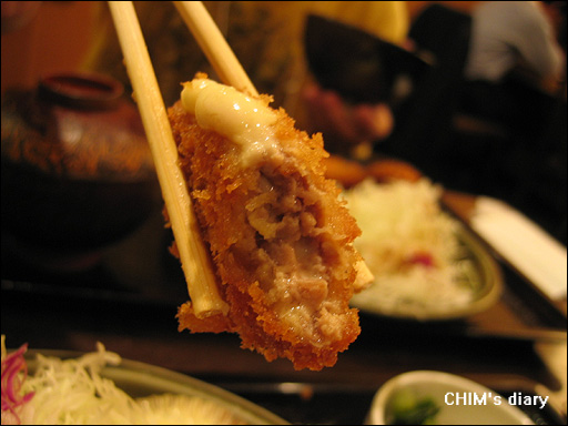 不過光是樣配著美味的白米飯就很有幸福感>\\\\\<。充滿肉汁的一口豬排。