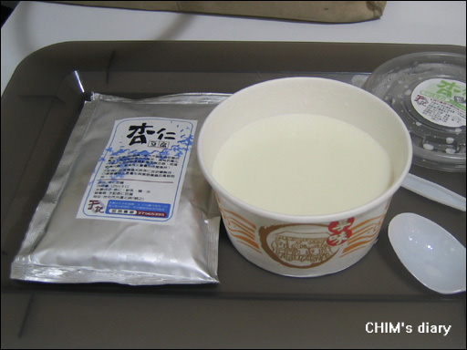 打開後,挖~~~好白白嫩嫩的杏仁豆腐阿0.0,一食味道還蠻清爽的。